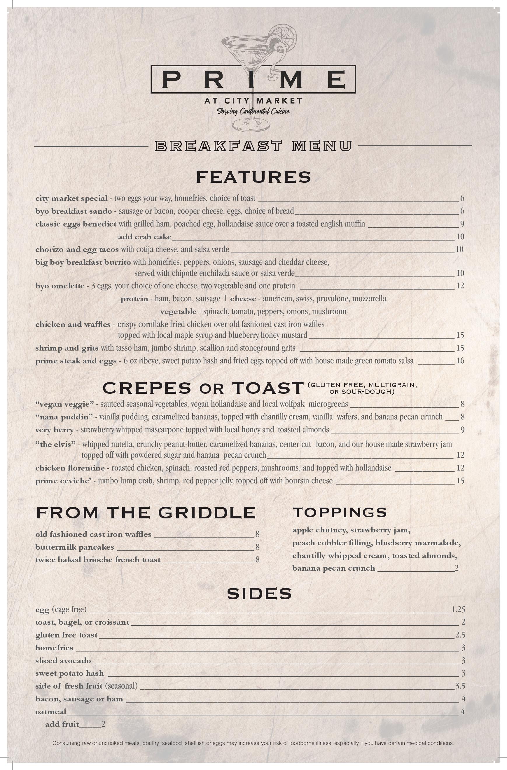 City Scramble Bowl 1500 Farm fresh eggs creme fraiche chives bacon crisp potato galette. Prime Fine Catering menu. Our menu highlighted by our prime dry aged cuts fresh sushi seafood and more.