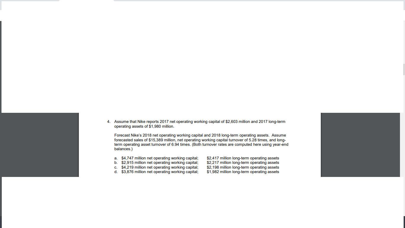 Solved 4 Assume That Nike Reports 2017 Net Operating Chegg Com